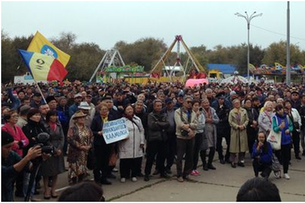 В октябре волна протестов в национальных республиках возрастала, но самыми крупными стали не «шаманские» митинги в Якутске, а протесты в Элисте, причем они носили сугубо политический характер: 26 сентября городское собрание Элисты утвердило Дмитрия Трапезникова из «ДНР» в качестве исполняющего обязанности главы столицы Калмыкии.